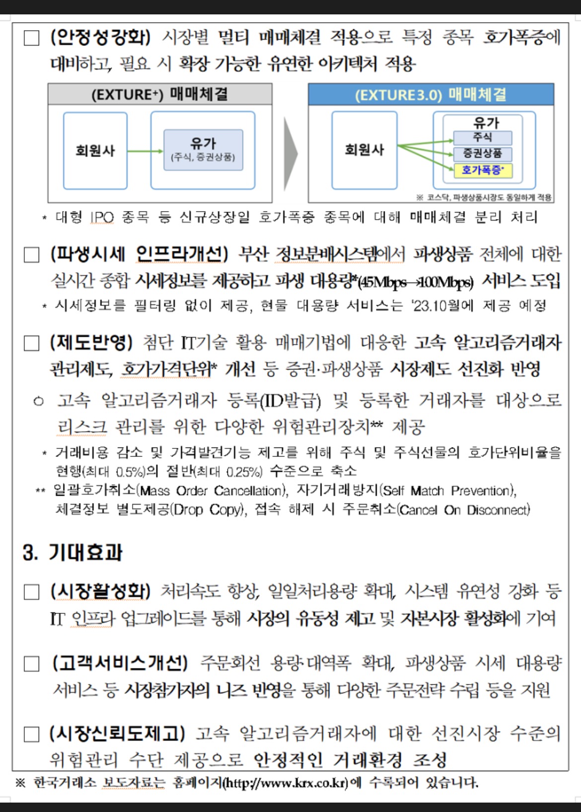 근데 이거 말고는 개인 투자자들에게 의미 있는 것은 아무것도 없어보입니다. 거래소 전산 개발, 운영하는 분들만 힘쓰고 거래소 전략팀은 너무 머리를 안쓴게 아닌지. 우리가 체감 할 수 있는 다른 하나는 그나마 호가 단위 개선정도일겁니다.